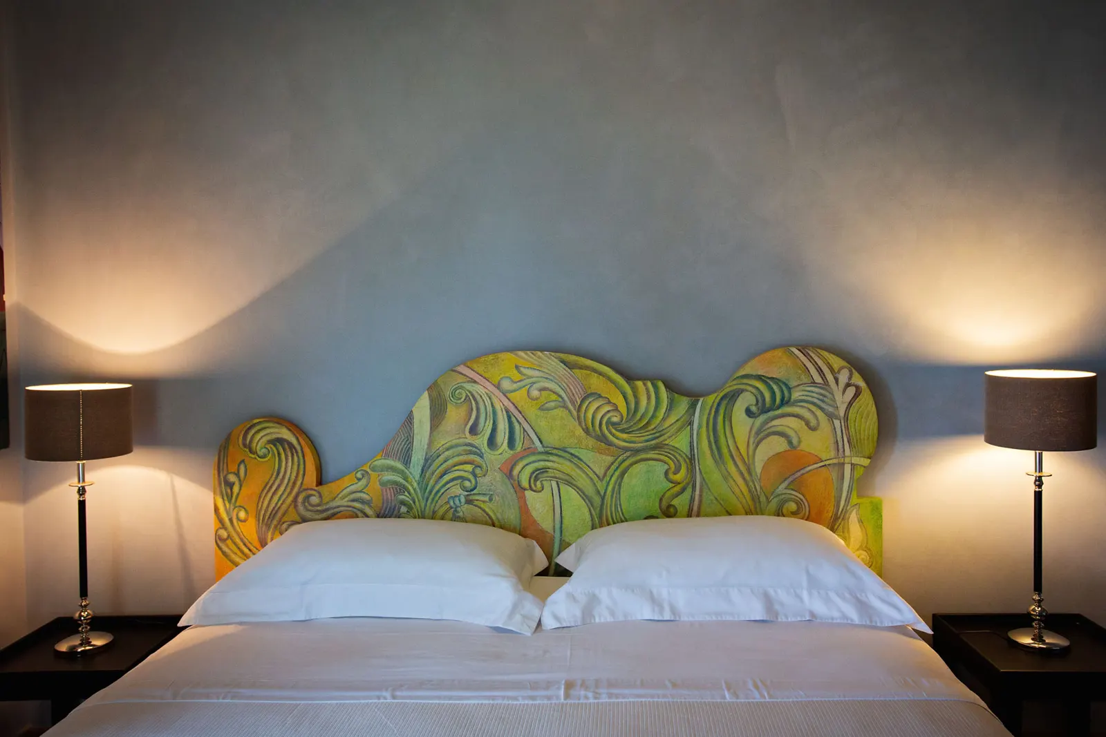 Camera doppia con giardino privato. Situata all'interno del palazzo storico, Melograno è una camera matrimoniale con un comodo bagno caratterizzata da un terrazzo giardino privato con vista mare. In ogni stagione dell'anno il giardino si tinge di nuovi colori e profumi che contribuiscono a rendere il vostro soggiorno unico e speciale. La camera offre una vista panoramica sulla costa di cui potrete godere senza nemmeno dovervi alzare dal letto. Ideale per soggiorni brevi, dispone di aria condizionata, connessione internet Wi-Fi, macchina per caffè espresso, bollitore con selezione di infusi e tè, piccolo frigorifero.