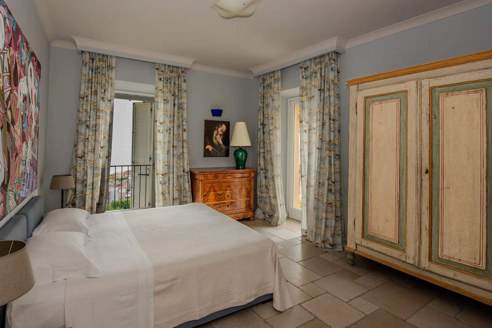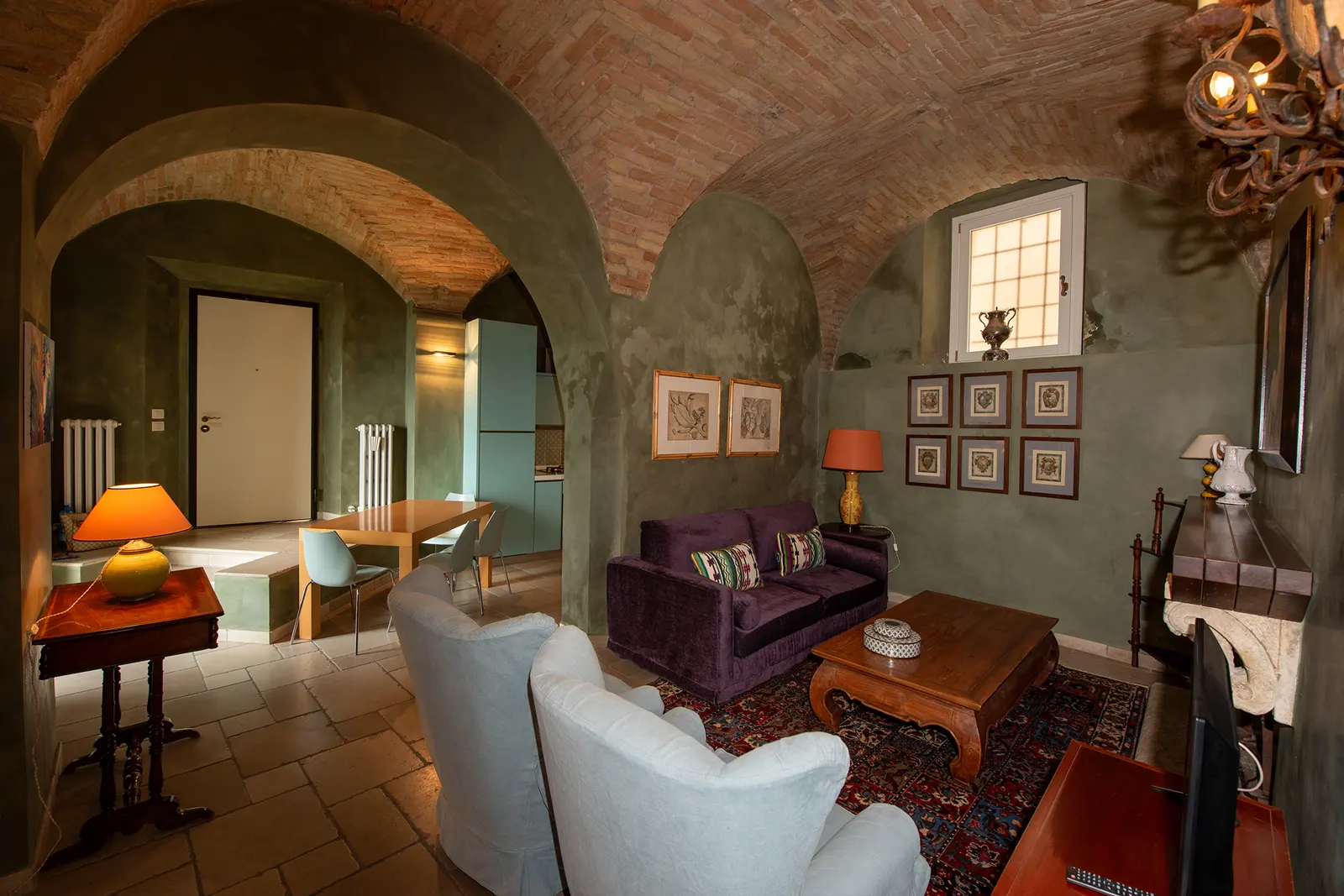 Percorrendo le strette vie del centro storico di Grottammare si può raggiungere l'ingresso, completamente indipendente, di Le Volte. È il più grande tra gli appartamenti di Casa Pazzi con i suoi 100 mq e prende il nome dal caratteristico soffitto a volta che rende particolarmente attraenti le zone giorno. Oltre alla cucina completamente attrezzata, un soggiorno vista mare con un divano antico e un enorme camino. Le Volte dispone di due comode camere da letto con vista mare, due ampi bagni e una piccola lavanderia con lavatrice. La connessione internet Wi-fi, la macchina per caffè espresso, la lavastoviglie ed il servizio di pulizia con cambio biancheria, vi permetteranno di trascorrere un soggiorno confortevole in una location da sogno. Le Volte non ha accesso diretto al giardino sottostante.